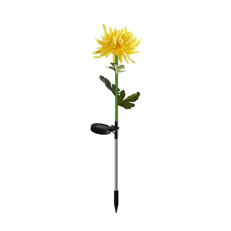 - Chrysanthemum flower solar powered garden/yard stake color-changing light, has sediment stem will light up.