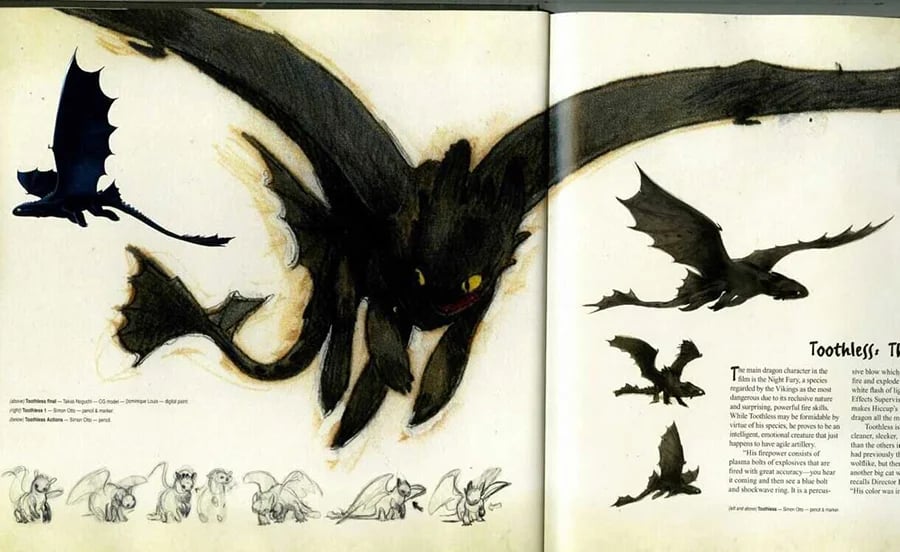 Night Fury is a very rare and most dangerous and smart dragon, and other dragons look very different, similar to bats, body with black scales, small size, expression and action dexterity cute.
