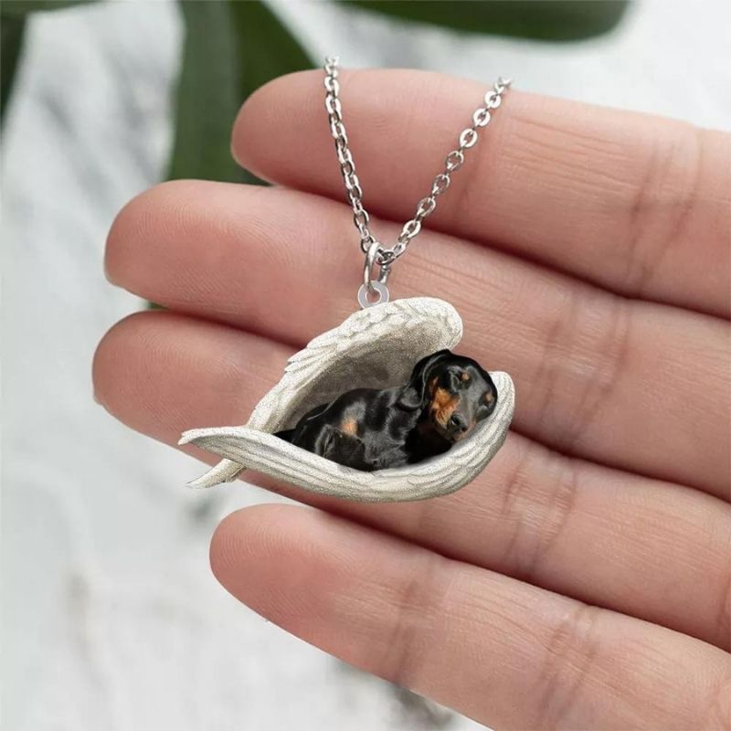 Black and Tan Dachshund Sleeping Angel Stainless Steel Necklace SN015