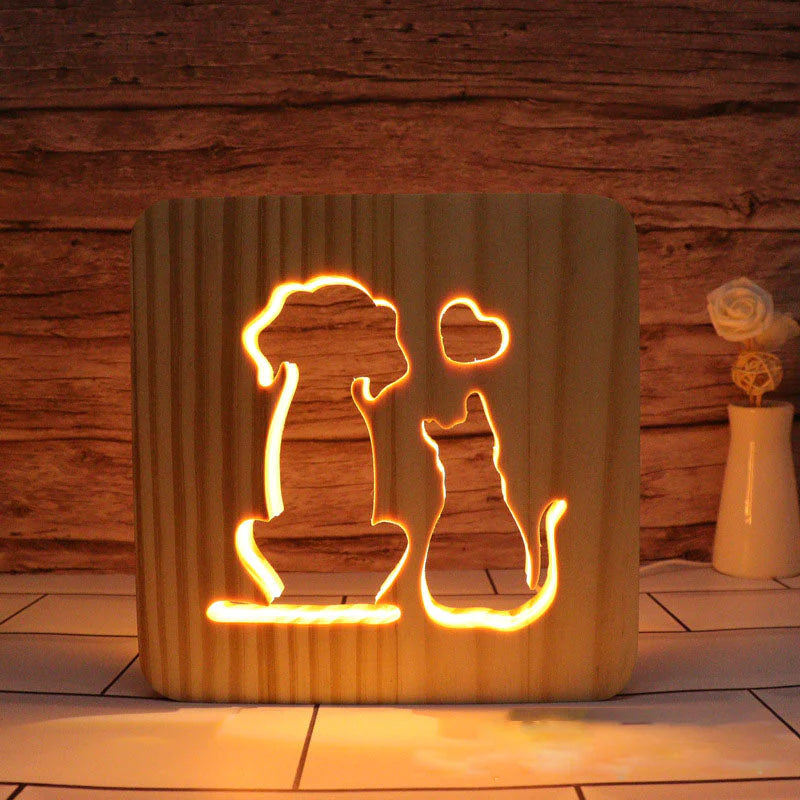 Cat and Dog Wooden Decorative Light