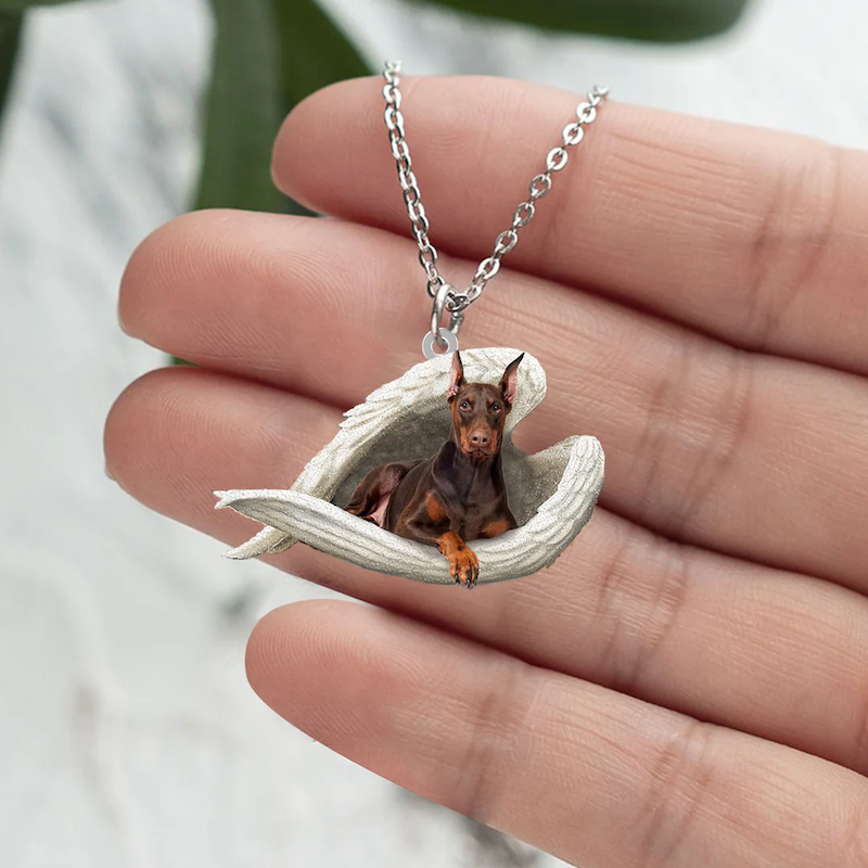 Dobermann (Brown) Sleeping Angel Stainless Steel Necklace SN154