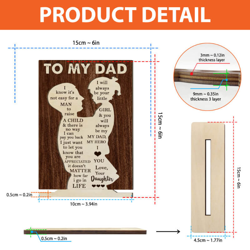❤️The wooden boards bear the silhouettes of a father and daughter, and below the silhouettes are the daughter's wishes and grateful to her father, making the entire ornament more warm and meaningful❤️.
