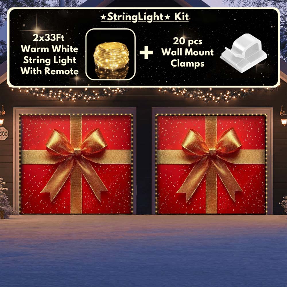 Now you can elevate your holiday display with our string light kit-available at 50% off! Pair your Christmas Garage Door Cover with glowing outdoor Christmas lights and turn your garage into a true showstopper. The kit includes 1x 33 ft warm white string light, a remote control, and 10x sticky wall mount clamps.