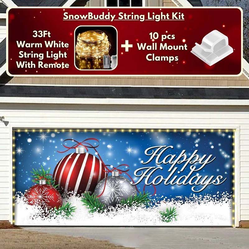 You now have the option toĀ add the string light kit to your orderĀ at 50% Off and turn your garage into a true winter wonderland. The kit includesĀ 1x 33ft warm white string light, a remote control,Ā and 10xĀ sticky wall mount clamps.