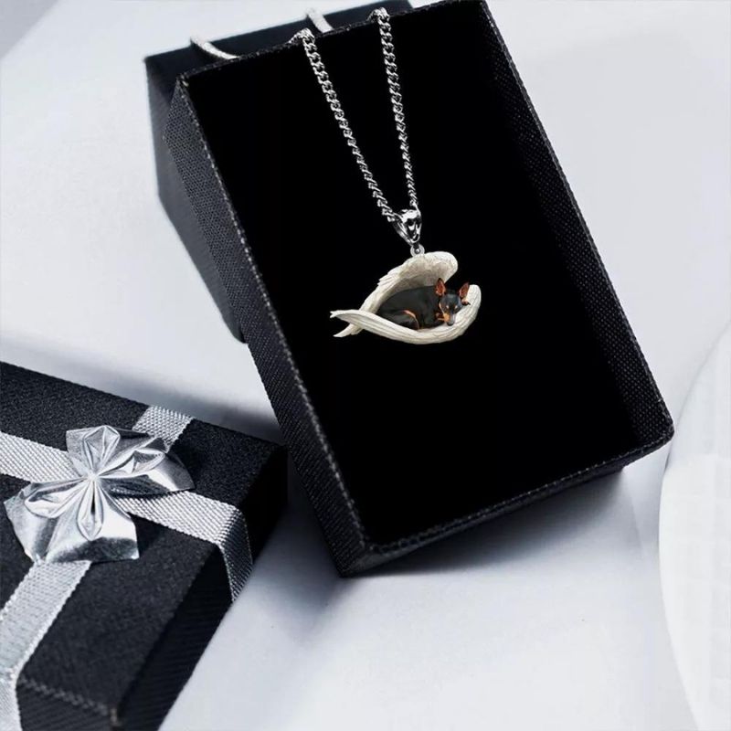 Miniature Pinscher Sleeping Angel Stainless Steel Necklace SN012