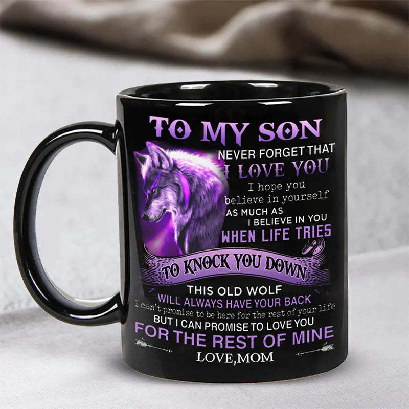 Best Gifts for Son with such Sweet Warm Sayings. The message is printed on the coffee mug so it will last forever. Let this coffee mug give him a sweeter life! The coffee mug set is an AWESOME way to express parents' love!