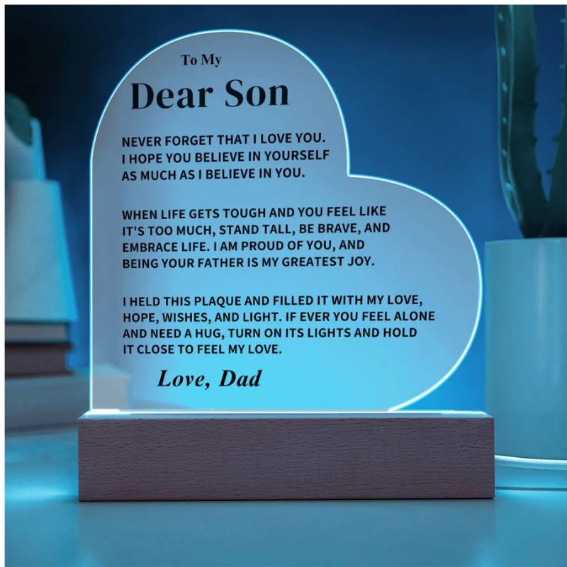 Heartfelt Message: Never forget that I love you. I hope you believe in yourself as much as I believe in you. When life gets tough and you feel like it's too much, stand tall, be brave, and embrace life. I'm proud of you, and being your mother is my greatest joy. I held this plaque and filled it with my love, hope, wishes, and light. If ever you feel alone and need a hug, turn on its lights and hold it close to feel my love.