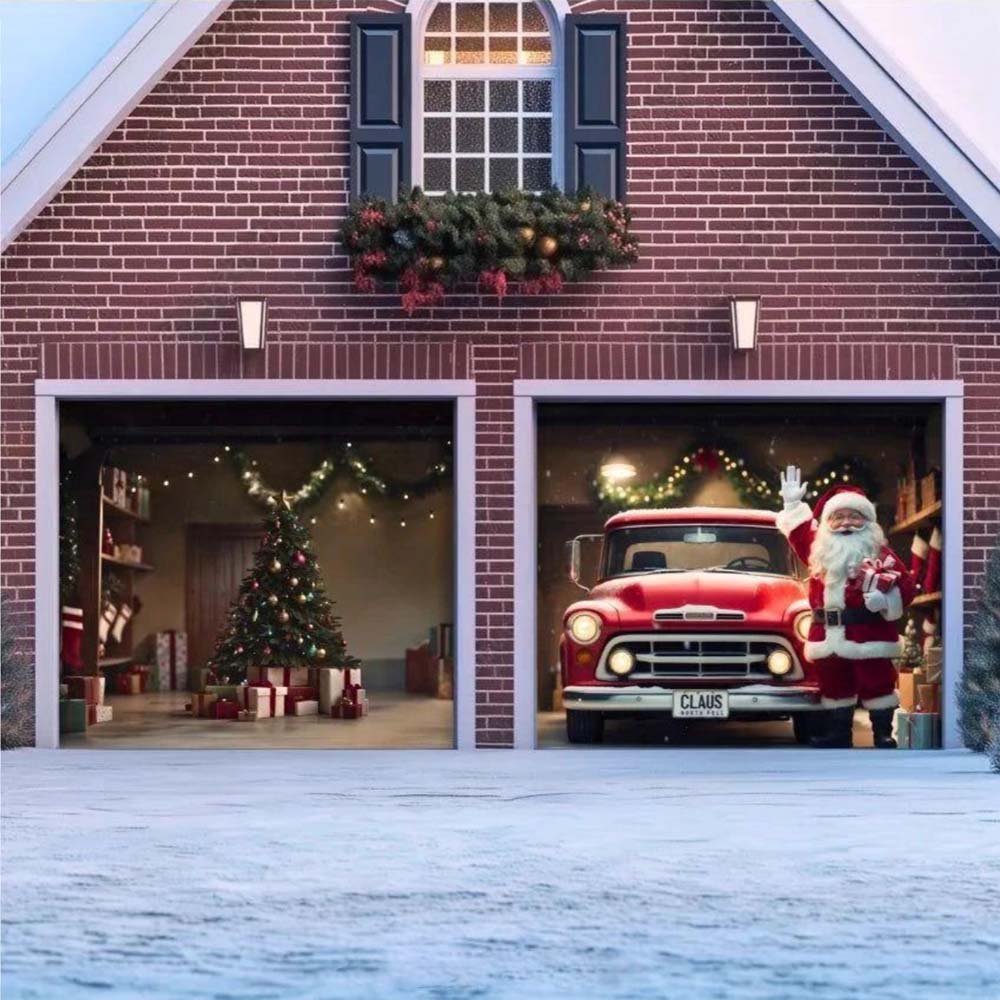 Introducing the Coolest Thing Since Reindeer on Roofs: 'Santa's Garage Christmas Garage Door Cover!' 🎄🚪
