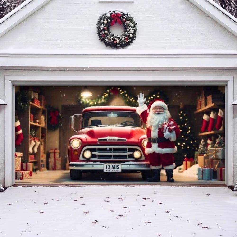 🎅🚗 Make your garage the jolliest stop in town. Santa’s vintage red ride, paired with holiday décor and gifts, brings the North Pole to your driveway and welcomes Christmas in style. This vibrant cover shows his red truck loaded with gifts and turns your garage into a magical scene that neighbors and family will never forget, making it one of the most unforgettable Christmas decoration ideas for your home.
