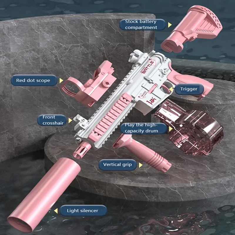 Red Dot Scope: Equipped with a scope for precise aiming, ensuring you can accurately hit your target and maximize your impact during intense water battles.
