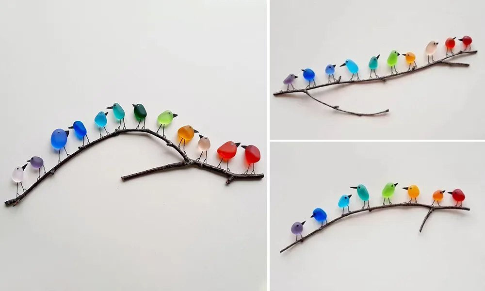 Artistic The colors of each bird are the most beautifully matched and will not disappoint. The legs of the birds are painted by the designer himself. The combination of real sea glass and the artist's meticulous craftsmanship creates a visually stunning and immersive experience for any viewer.