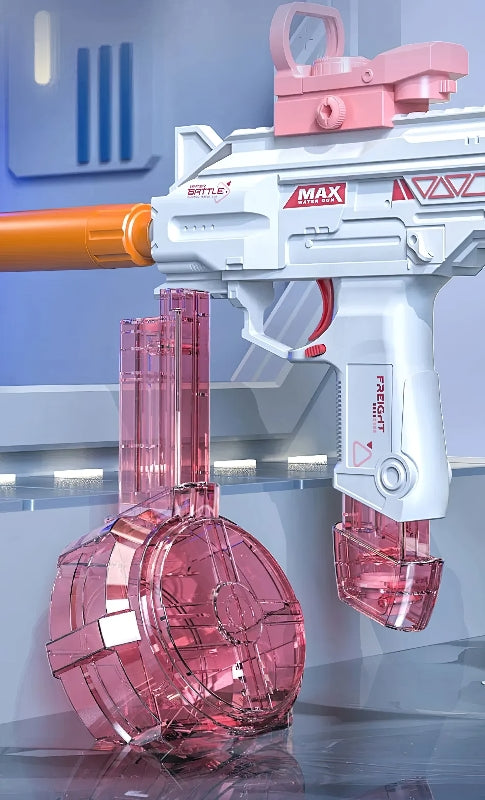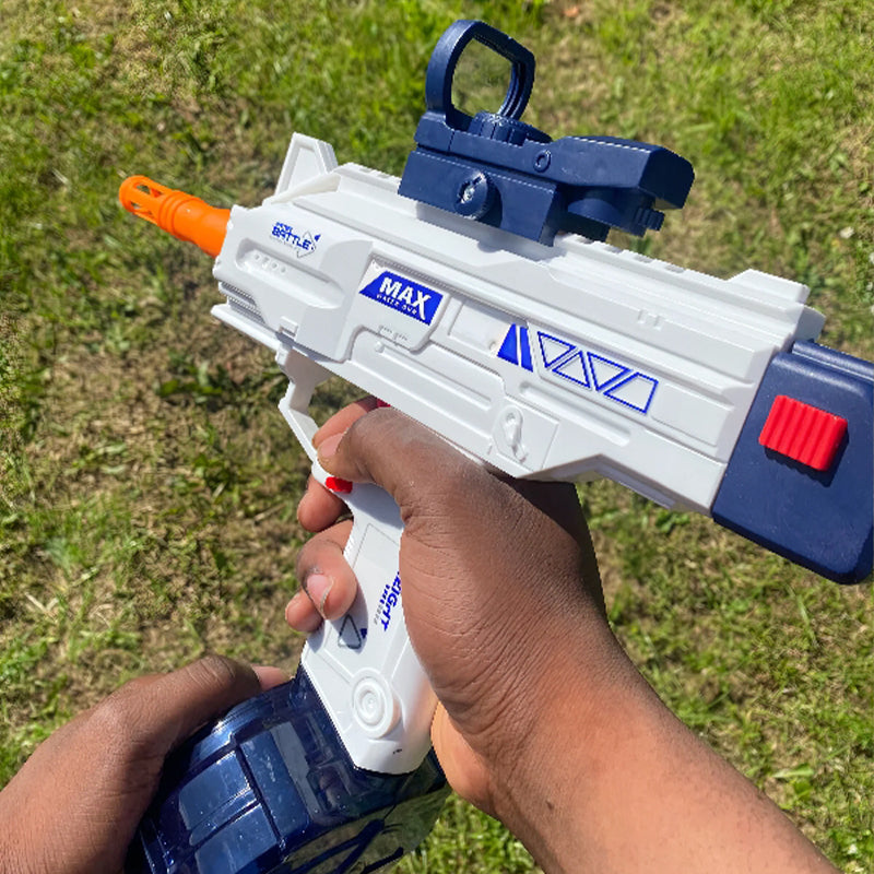 Keep the fight going with the fast-pump action of the Uzi Electric Water Gun! Quick reloads and seamless shooting let you outgun and win any water battle.