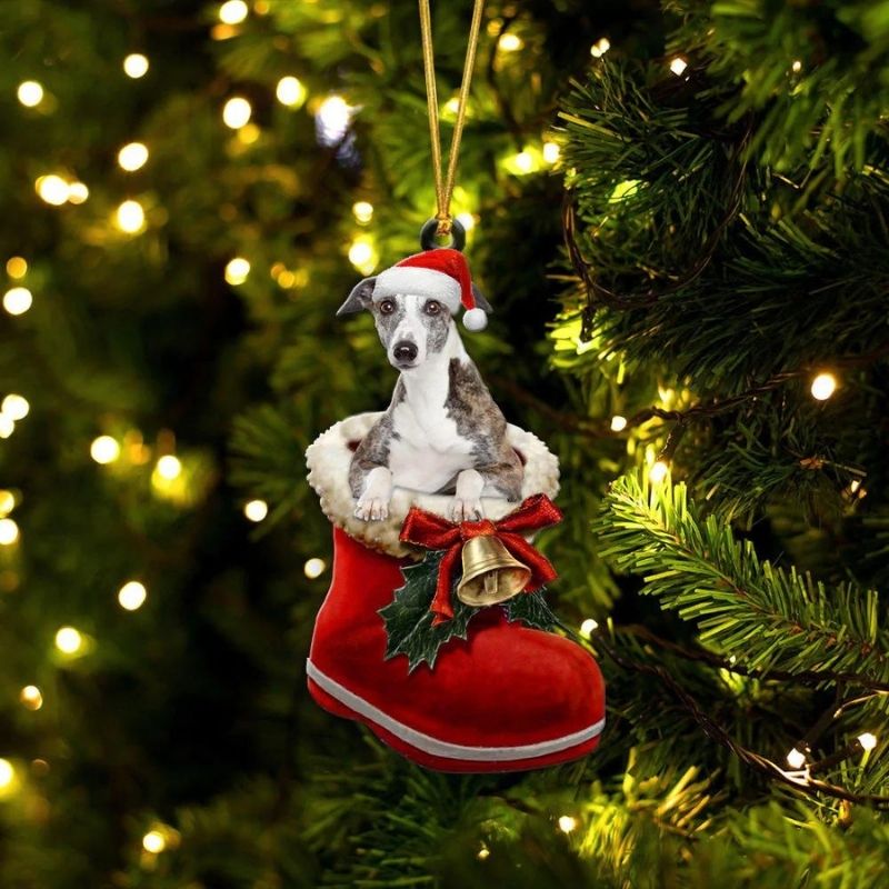 Whippet In Santa Boot Christmas Hanging Ornament SB159